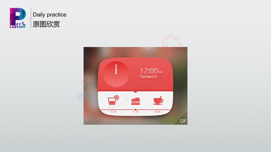 背景制作:制作方法(1.选择插入——形状——矩形 2.设置渐变填充(参数设置见图))原图欣赏:底面制作:制作方法(1.选择插入——形状——圆角矩形;2.调节黄色手柄,使其弧度与原图相近;3.去除圆角矩形边框;4.设置渐变填充(参数设置见图))底面制作:制作方法:(1.复制渐变圆角矩形;2.调节黄色手柄,使其弧度与原图相近;3.选择圆角矩形——右键——编辑顶点;4.设置形状填充(白色))时钟制作:制