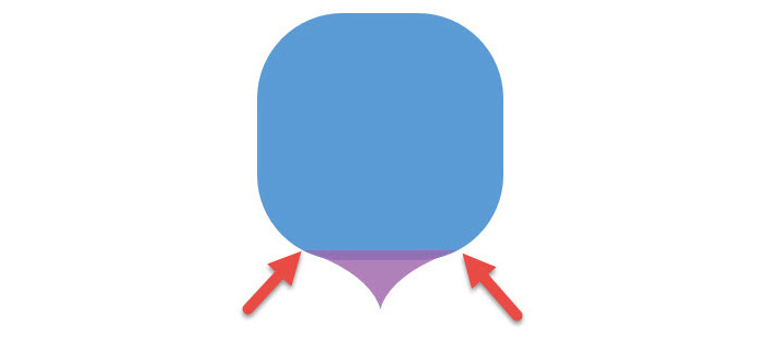 让倒置的三角形与之前的圆角矩形,“完美”的重合在一起,这里可以放大视图,进行精准调整。注意下图中红色箭头的位置。