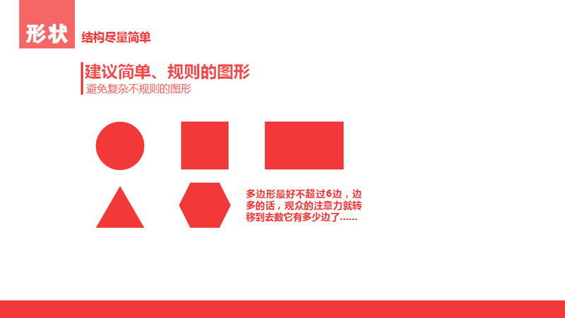 形状在PPT中的应用:结构尽量简单。建议简单、规则的图形;